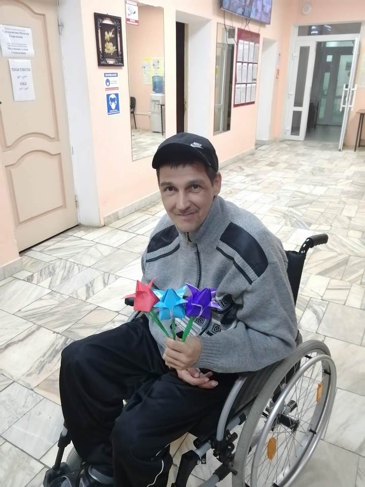8 марта проживающие, в хорошем настроении и улыбками на лице. Увлеченно делали цветы из бумаги. Мужчины поздравляли женщин с праздником 8 марта.
