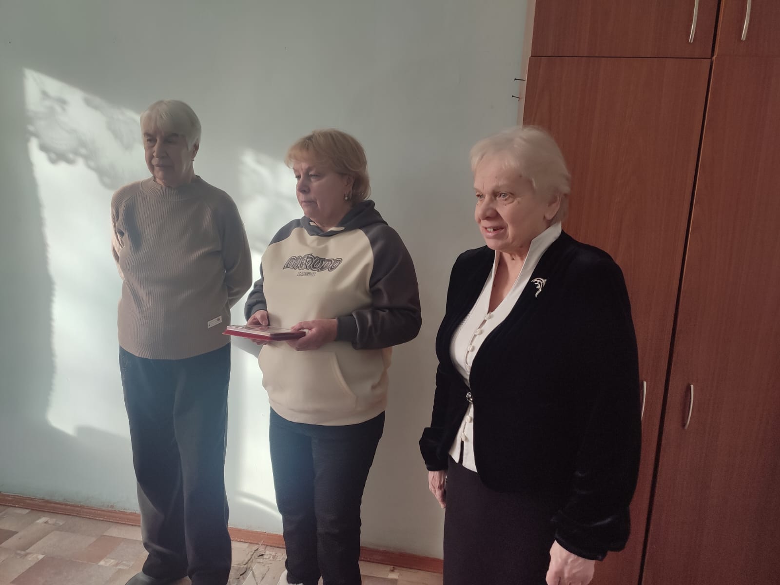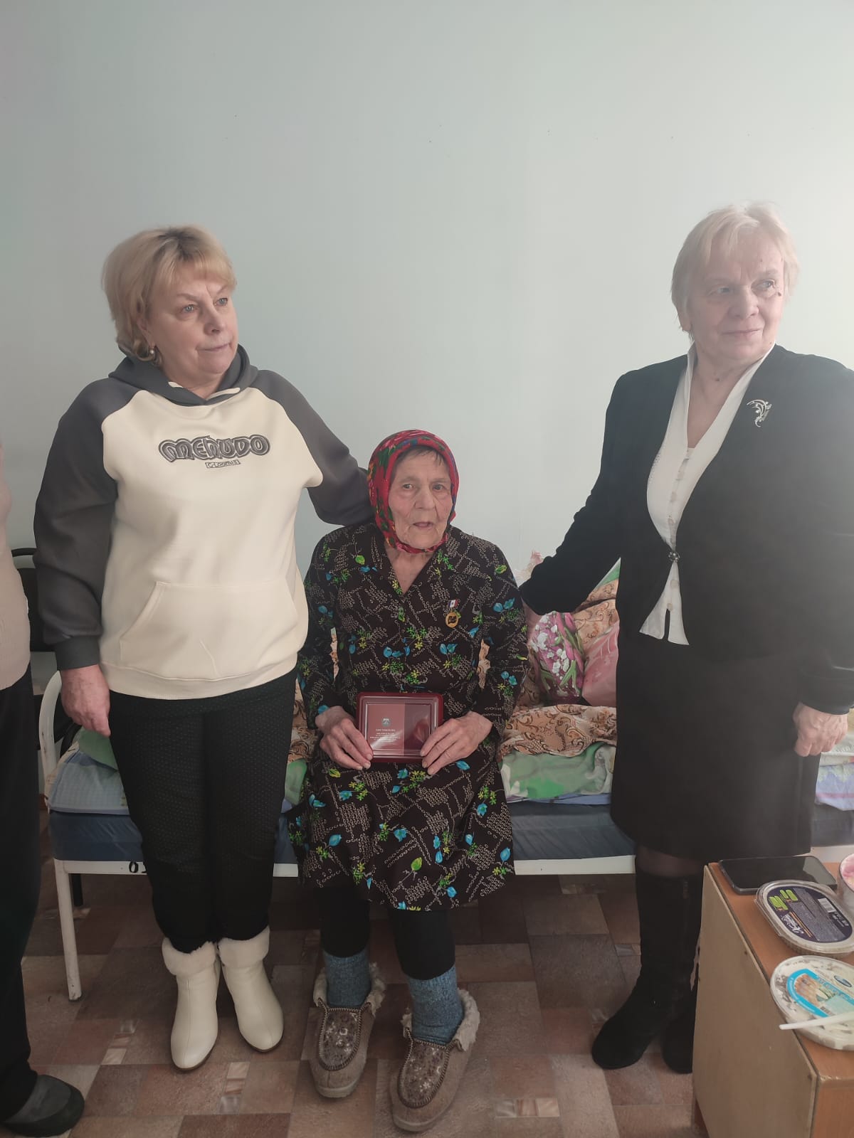 14 февраля, в свой день рождения, Мария Яковлевна Дмитриева принимала гостей - Главу Администрации Железковского сельского поселения - Долотову Татьяну Александровну, генерального директора ООО "Решающий" - Платонову Ларису Алексеевну и председателя совета ветеранов - Романову Надежду Яковлевну. гости поздравили именинницу с 93-летием и вручили юбилейную медаль, в честь "80-летия освобождения Новгорода от немецко-фашистских захватчиков"