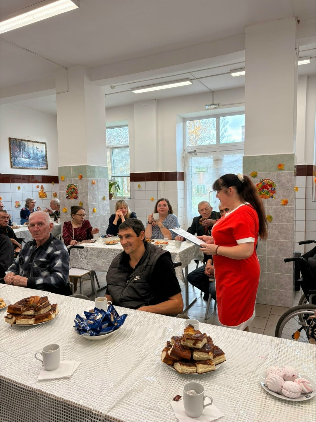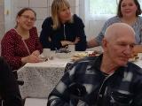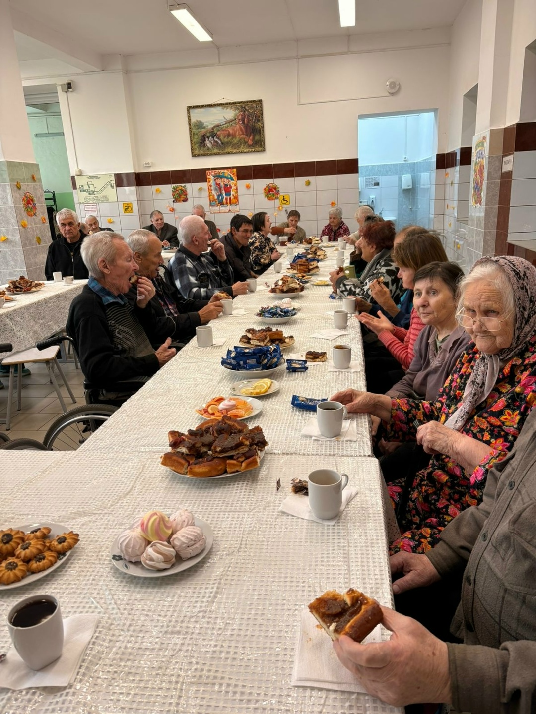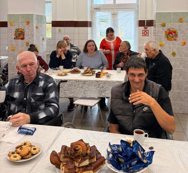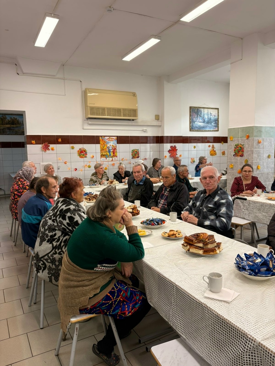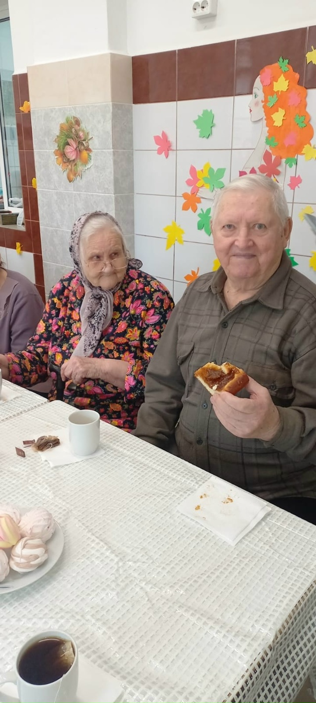 За большим столом на Осенние посиделки собрались гости и наши подопечные, чтобы за чашечкой чая вспомнить стихи и песни об осени и просто пообщаться.