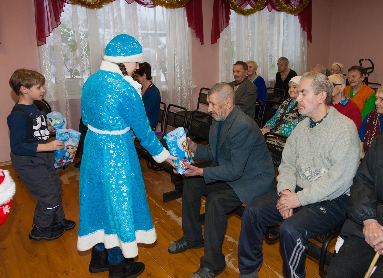 2 января по уже сложившейся традиции на отделение активного долголетия приехали представители волонтерского движения из города Боровичи и не просто с подарками, а еще с дедом Морозом, Снегурочкой и группой боровичских юных активистов, которые подарили небольшой концерт и подарочек - из воздушных шаров. Дед Мороз со Снегурочкой провели игру и загадали загадки прекрасно повеселили нашу "молодежь"