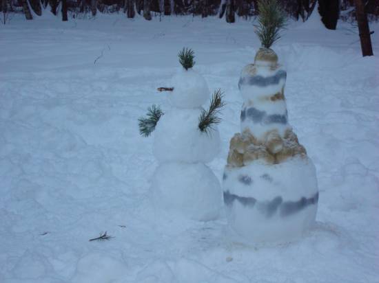 Какая красота на территории дома интерната. Проживающие слепили из первого снега красивых снеговиков.