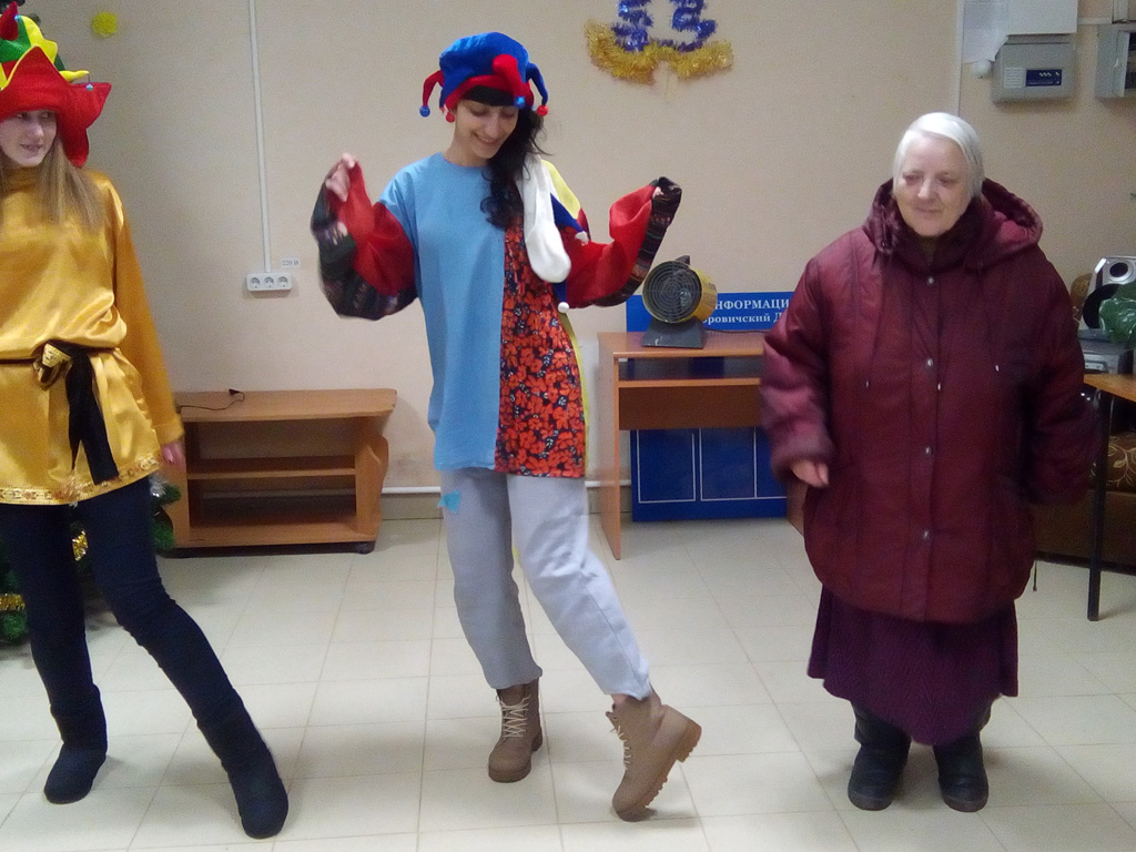 14 января в доме-интернате отпраздновали Старый Новый год.  В гости с концертом приехали артисты из Дома молодёжи.  С собой они привезли весёлые, зажигательные танцы и песни, которые окунули всех присутствующих в мир детства. Вспомнили и полюбившийся танец «Елочки - пенёчки», который поднял настроение зрителям.  Больше всего зрителям понравилось представление про Старый и Новый год, которое подняло настроение и увлекло присутствующих в сказку. Проживающие от души посмеялись и набрались сил на новый 2016 год. После завершения представления Дед Мороз со Снегурочкой и другими артистами поздравили всех с Новым годом и подарили небольшие открытки и конфеты.